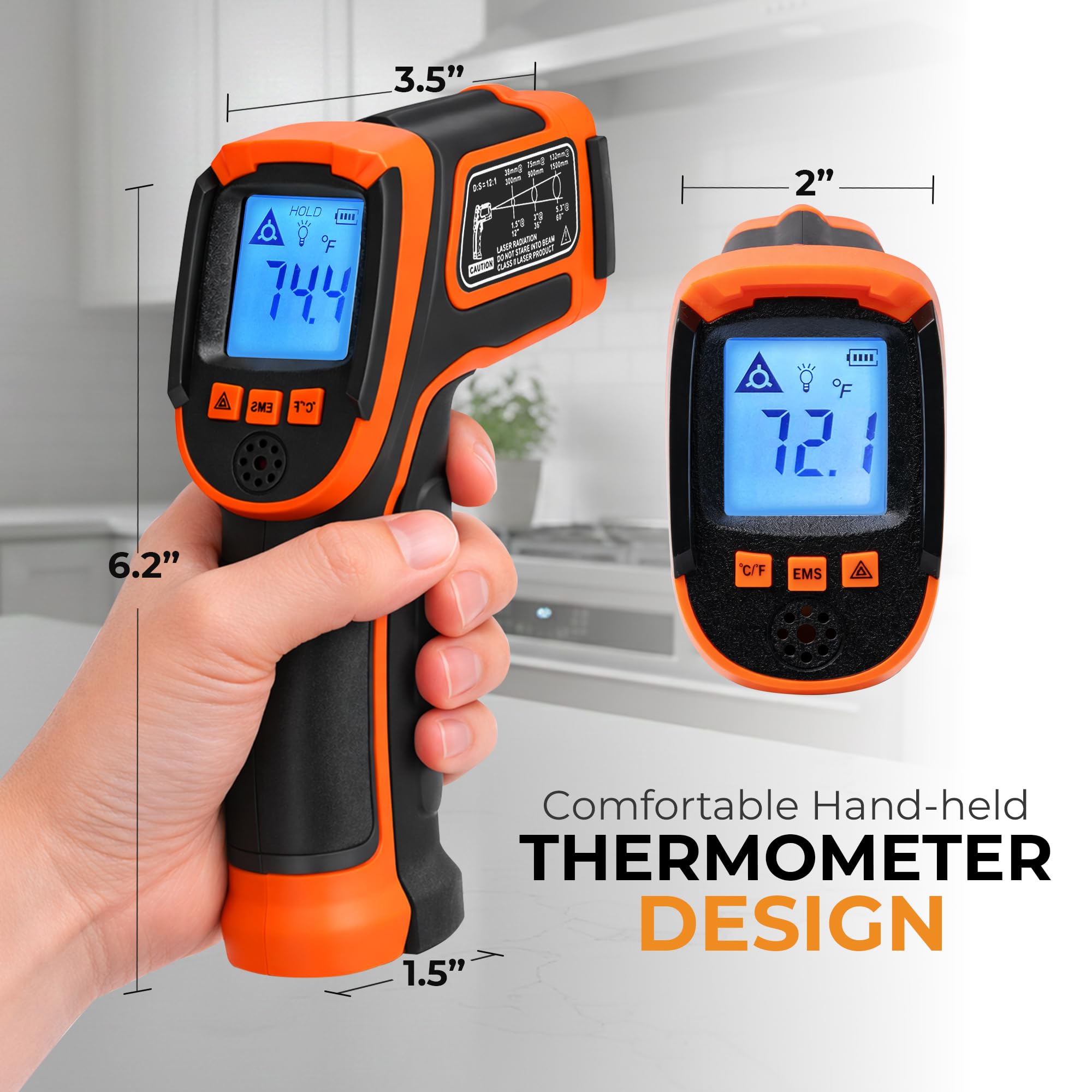 - SUITABLE FOR A WIDE RANGE OF APPLICATIONS: Our laser temperature gun is suitable for both residential and industrial environments. This Kizen laser thermometer excels for checking oven temperatures, as a griddle accessory, and for monitoring vehicle engine temperatures. It is indispensable for HVAC projects and other precise temperature assessments.